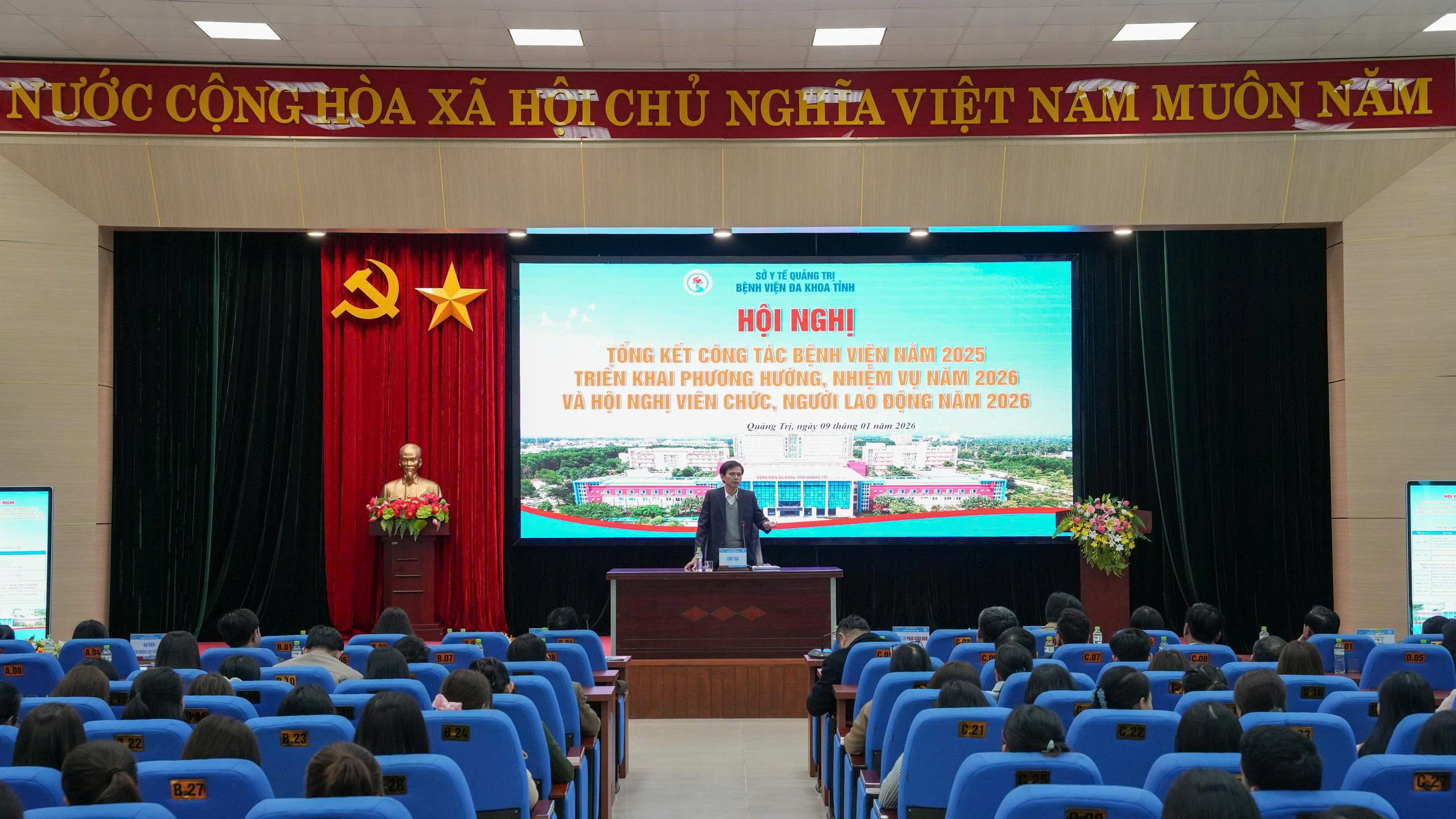 Ngày 09/01/2025, Bệnh viện Đa khoa tỉnh Quảng Trị tổ chức Hội nghị tổng kết công tác năm 2025, triển khai phương hướng, nhiệm vụ năm 2026 và Hội nghị viên chức, người lao động năm 2026.