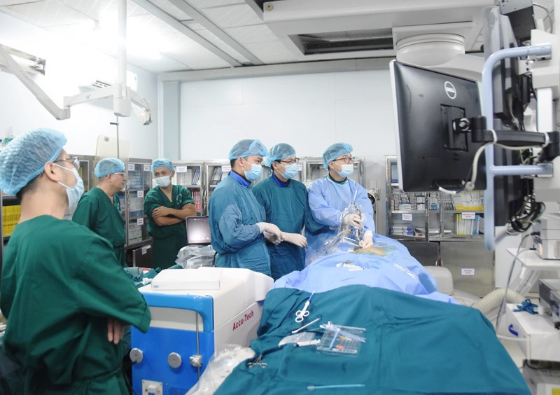 Trong quá trình này, bác sĩ sử dụng tia X để quan sát bên trong cơ thể, để đảm bảo loại bỏ hoàn toàn sỏi mật mà không cần can thiệp mổ mở như trước.