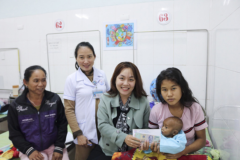 Chị Hồ Thị Bưởi, mẹ của bệnh nhân nhi Hồ Văn Chon Ni (13 tháng tuổi), sinh sống ở huyện Sê Pôn, tỉnh Savannakhet (Lào) không giấu được sự xúc động khi chia sẻ về hành trình khó khăn cùng con chiến đấu với bệnh tật đã luôn nhận được sự đồng hành, giúp đỡ từ phía đội ngũ y, bác sĩ tận tâm và Tổ CTXH. Trước đó, con của chị Bưởi nhập viện với tình trạng viêm phổi và suy dinh dưỡng nặng. Tuy đã 13 tháng tuổi nhưng bé chỉ nặng 3,4 kg và không thể tự ngồi, đứng được. Vì hoàn cảnh gia đình hết sức khó khăn, vợ chồng chị không có việc làm ổn định, bé Chon Ni cũng không có thẻ BHYT nên đã có lúc gia đình chị nghĩ đến việc đưa con về nhà, tự đi kiếm lá cây rừng để chữa trị cho con. Nhờ sự động viên, hỗ trợ của bệnh viện, bé Chon Ni đã được thăm khám kịp thời, tích cực điều trị để cải thiện tình trạng sức khỏe. Đồng thời, Tổ CTXH cũng đã kêu gọi sự giúp đỡ, hỗ trợ từ cộng đồng để gia đình chị có điều kiện chữa bệnh cho con và chi trả các khoản sinh hoạt phí trong thời gian điều trị. Ngoài số tiền mặt trị giá gần 28 triệu đồng đã được các mạnh thường quân ủng hộ, bé Chon Ni còn được các tổ chức, cá nhân hảo tâm đến thăm và trao tặng các vật phẩm thiết yếu như bỉm, sữa, áo quần… giúp gia đình chị Bưởi vượt qua khó khăn trước mắt, có điều kiện cho con điều trị nội trú theo đúng phác đồ. “Nhìn con hồi phục tốt, sức khỏe được cải thiện từng ngày, gia đình tôi vô cùng hạnh phúc và gửi lời cảm ơn chân thành nhất đến Bệnh viện đa khoa tỉnh cũng như các mạnh thường quân đã quan tâm, giúp đỡ gia đình tôi trong cơn hoạn nạn”, chị Bưởi nói.
