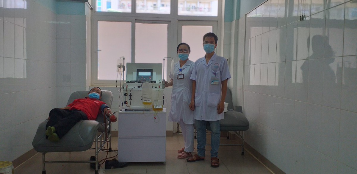 Tình nguyện viên CLB hiến máu cấp cứu người bệnh. Ảnh – NVYT