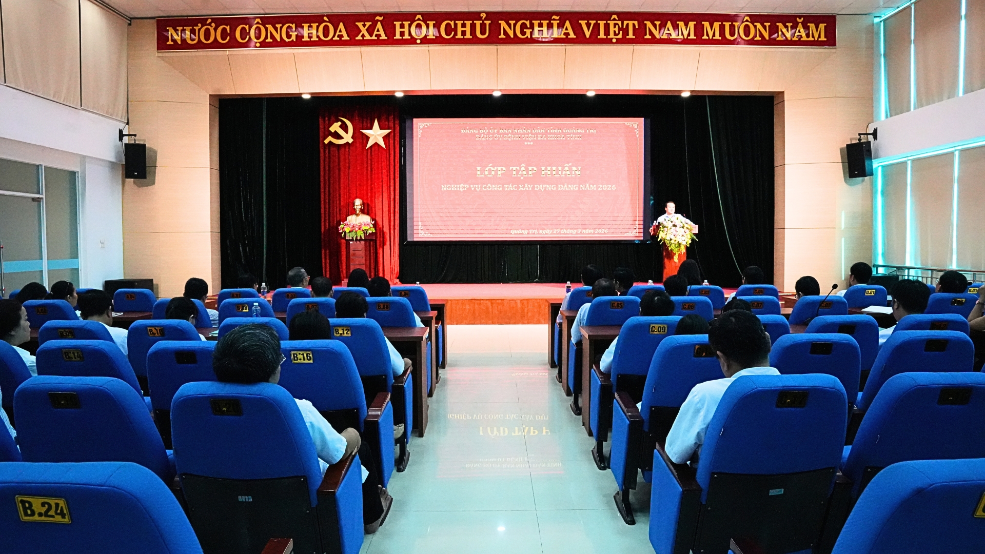 Ngày 27/3/2026, Đảng bộ Bệnh viện Đa khoa tỉnh Quảng Trị tổ chức Hội nghị tập huấn nghiệp vụ công tác Đảng năm 2026 nhằm tiếp tục nâng cao chất lượng, hiệu quả công tác xây dựng Đảng trong toàn Đảng bộ, đáp ứng yêu cầu nhiệm vụ trong giai đoạn mới.