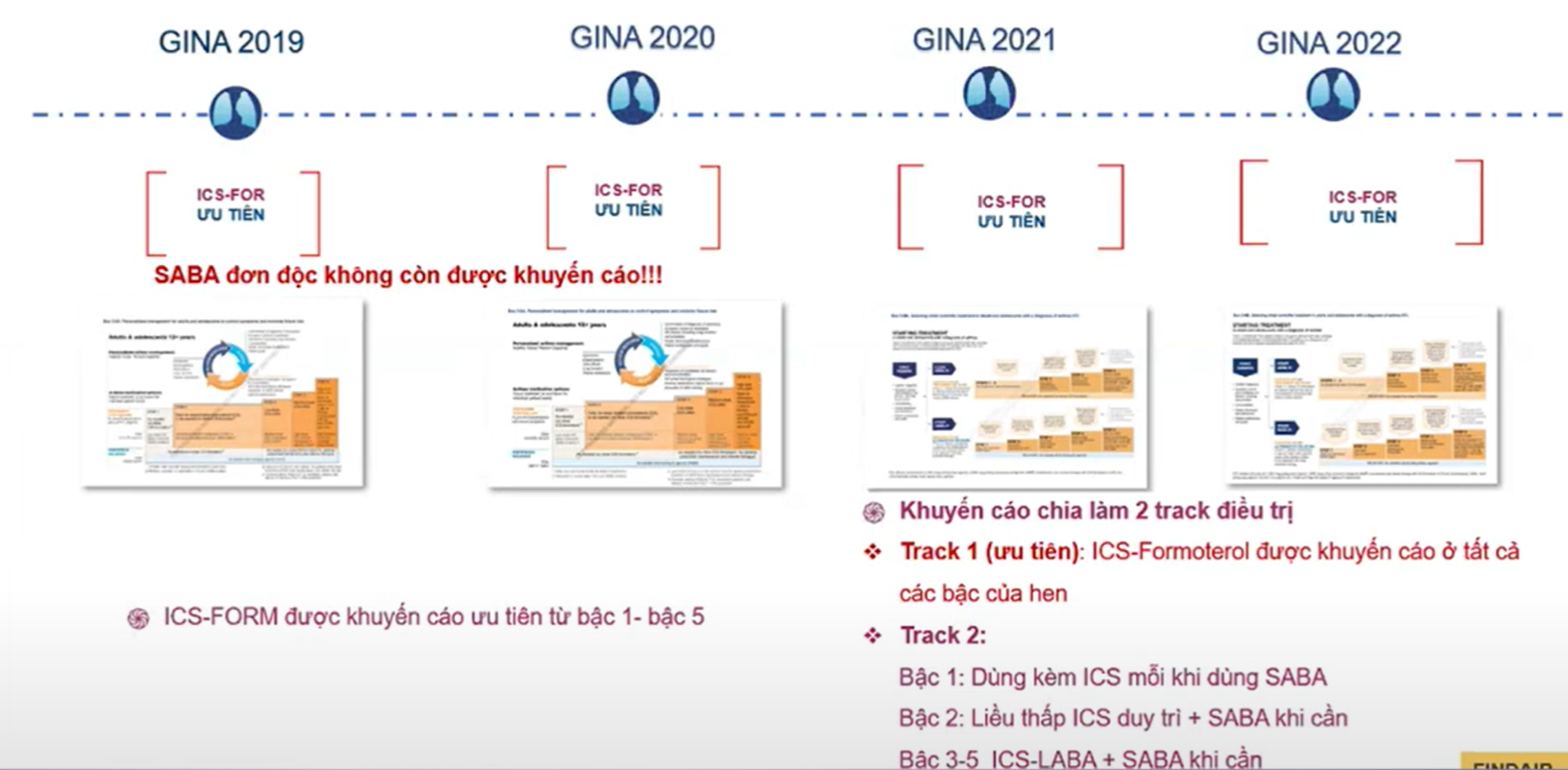 - GINA 2023 tiếp tục track 1 (ICS – Formoterol kháng viêm giảm triệu chứng +/- duy trì) là lựa chọn ưu tiên.
