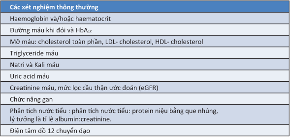 | Tăng huyết áp | Đái tháo đường | Bệnh thận mạn | Bệnh mạch vành | Đột quỵ/ TIA |