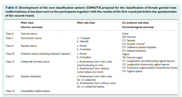 Loại IIIa: Tử cung dị dạng một phần: vách ngăn trong khoang tử cung ngang trên mức eo tử cung (tử cung hai sừng). Loại IIIb: Tử cung dị dạng hoàn toàn: vách ngăn phân chia hoàn toàn khoang tửcung (tử cung đôi).