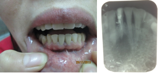 Nang chân răng 41 gây sưng phồng ngách lợi môi dưới