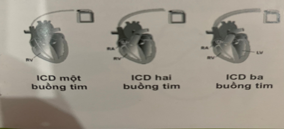 - ICD (máy khử rung tự động): Có chỉ định khi suy tim EF ≤35%, tiên lượng sống thêm ≥1 năm, còn triệu chứng dù đã điều trị nội khoa tối ưu do bệnh cơ tim giãn, bệnh tim thiếu máu cục bộ hoặc bệnh nhân có rối loạn nhịp thất nặng có thể gây mất huyết động.