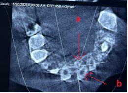| Hình ảnh răng thừa (a) xuất hiện rất rõ trên CT Cone Beam, (b) là hình ảnh R21 |