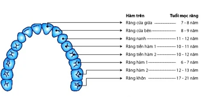 | Hình 6: Tuổi mọc răng vĩnh viễn hàm trên |