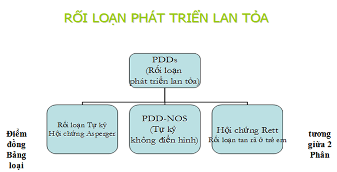 Theo ICD 10, rối loạn phát triển lan tỏa gồm những tiểu mục sau: tự kỷ ở trẻ em (F84.0), tự kỷ không điển hình (F84.1), hội chứng Rett (F84.2), rối loạn lan tỏa tan rã khác ở trẻ em (F84.3), rối loạn tăng hoạt động kết hợp với chậm phát triển tâm thần và các động tác định hình (F84.4), hội chứng Asperger (F84.5), rối loạn phát triển lan tỏa khác (F84.8), rối loạn phát triển lan tỏa không đặc hiệu (F84.9).