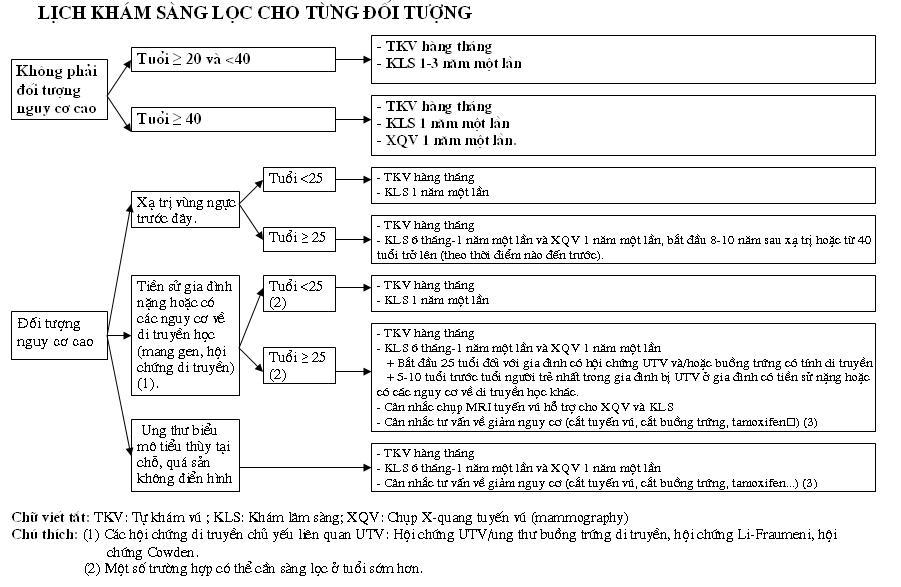 Các biện pháp sàng lọc UTV bao gồm: tự khám vú, chụp vú và khám lâm sàng tuyến vú.