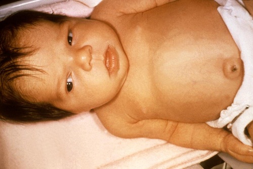 Bệnh gây rối loạn hình thành tuyến giáp, có biểu hiện: phù niêm, vàng da, chậm lớn. Nếu không được phát hiện sớm và điều trị kịp thời thì sẽ gây chậm phát triển tâm thần vận động, đần độn ở trẻ.