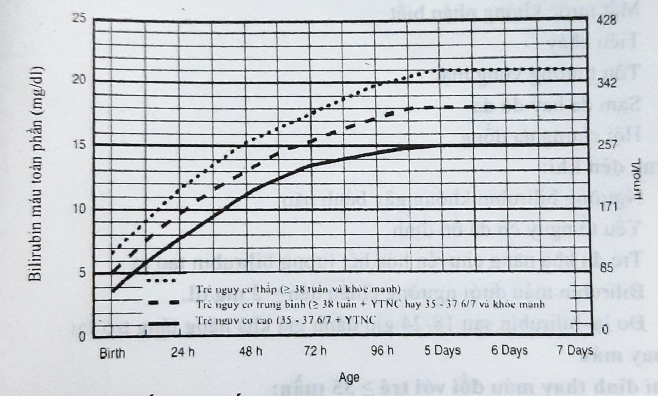 Vàng da nặng: Theo Tổ chức Y Tế Thế Giới, vàng da nặng (áp dụng trẻ >=35 tuần tuổi thai) nếu:
